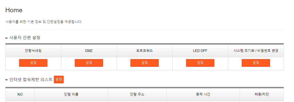 아이디 비밀번호는 디폴트로는 아이디는 admin, 비밀번호는 유선 mac address 마지막 6자리로 설정되어 있다.