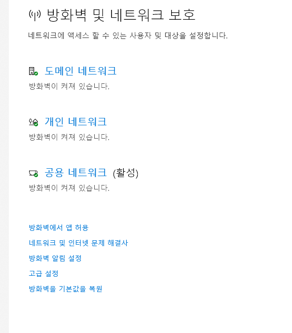 이러면 이제 외부ip + 포트포워딩 때 지정한 외부 포트번호 1.246.xxx.xxx:9999를 브라우저 검색창에 입력하면 내가 켜놓은 8080포트의 서버에 접속하게 되는데... 여기서 문제가 생겼었다. 방화벽을 해제하든, 그 외에 여러 수를 써봐도 접속이 안 되는 것이다.