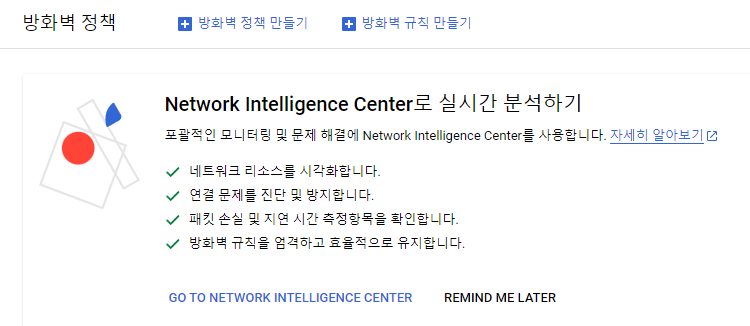 위와 같이 메뉴에서 vpc 네트워크 -> 방화벽으로 들어간다.