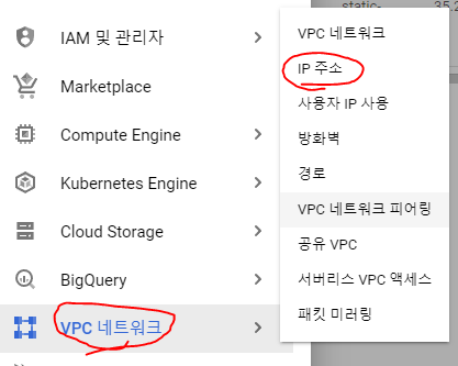 vpc 네트워크 -> ip주소 탭으로 들어간다.