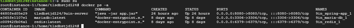 docker 명령어를 실행할 때는 sudo su를 통해 관리자 로그인을 하고 해야한다. 그리고 docker-compose.yml이 있는 디렉토리로 이동해서 실행해야한다는 사실도 잊지 말자.
