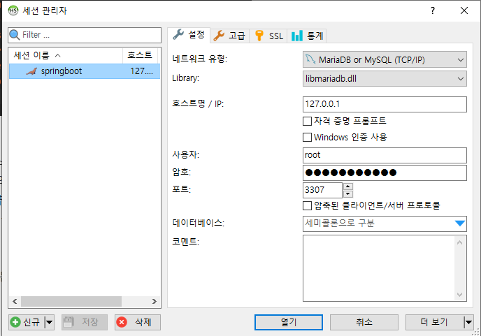 마리아 DB는 공식 사이트에서 설치가 가능하다. 이 때, HeidiSQL이라는 데이터베이스 도구가 자동으로 설치되고, 이것을 통해 db에 접속할 수 있다.