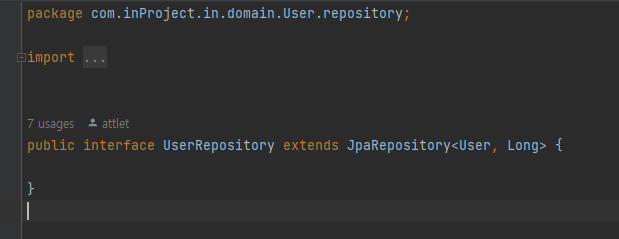 user의 repository, service를 작성하기 위해 user도메인 안에 repository, service 패키를 만들어 그 밑에 클래스 파일을 생성한다.